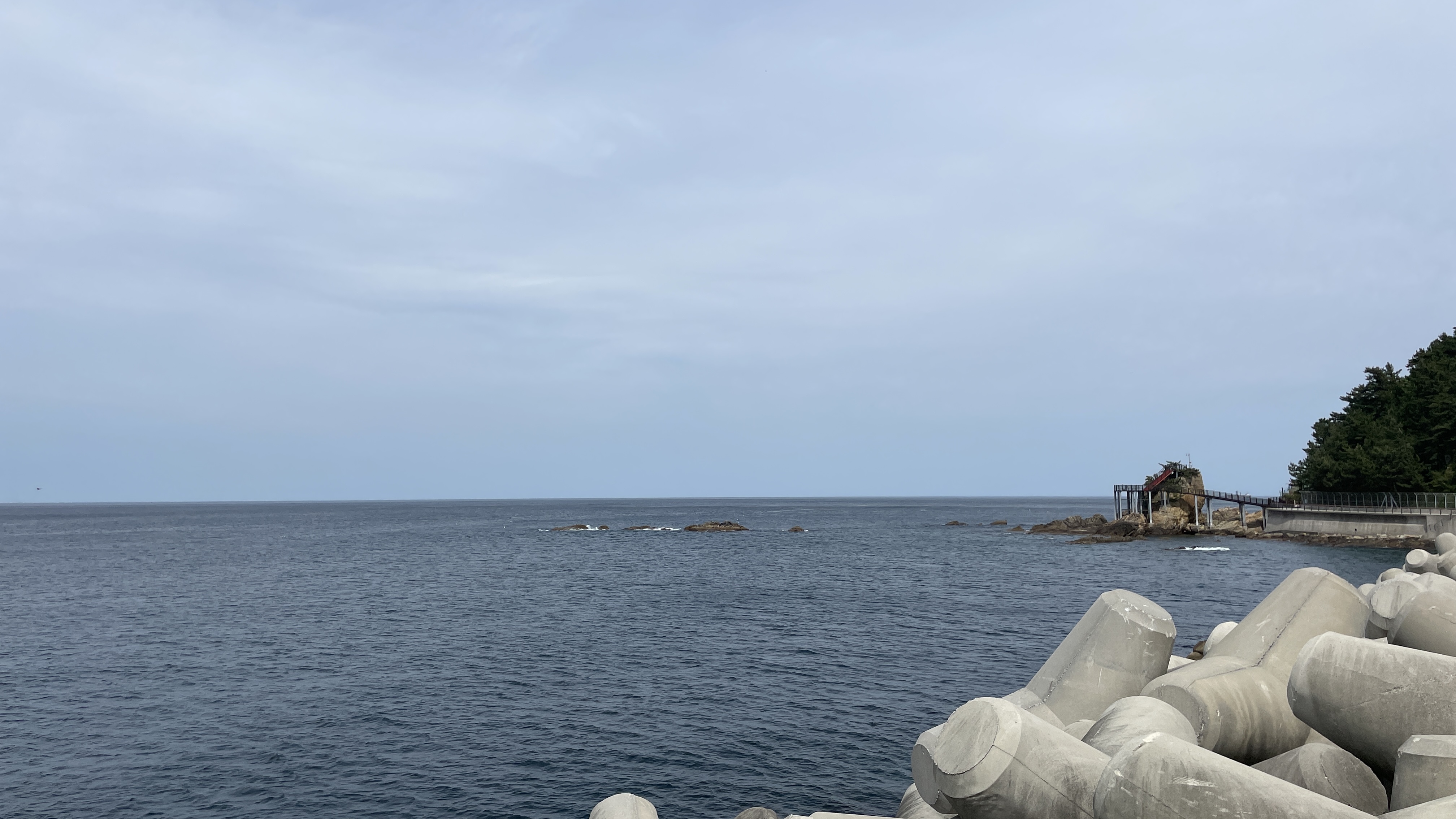 이런 곳에 올 때마다 신기한건, 언제든지 꼭 낚시하는 사람들이 있다는 것이다. 테트라포드 위로 여러 낚시대를 펼치고 홀로 낚시하시는 조사님에게 잘 잡히는지 물어보았는데, 오늘은 영 꽝이랬다.