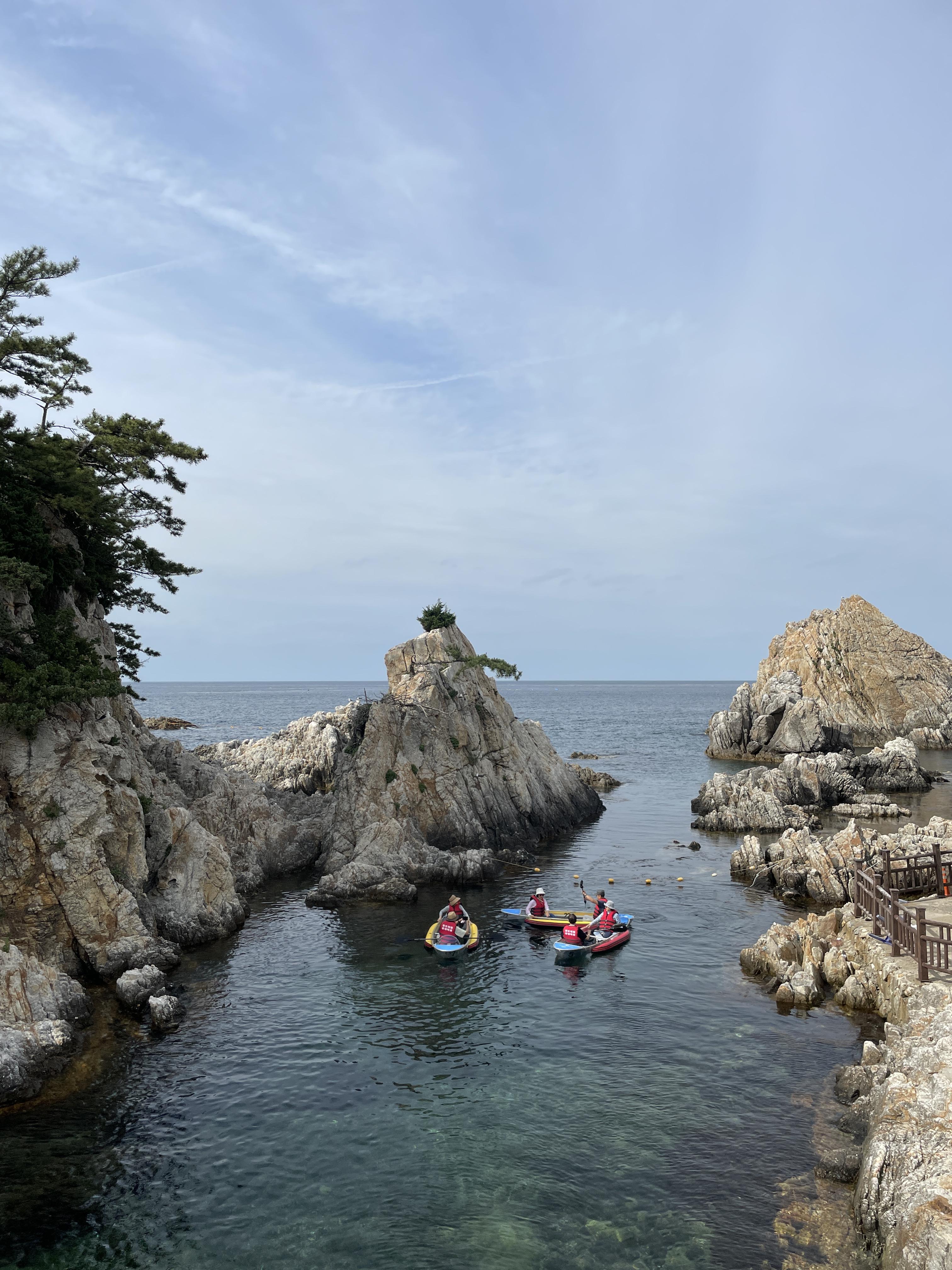 집에서 출발한지 4시간 반만에 첫 목적지인 장호항에 도착했다. 평일이고, 약간 점심시간이 지난 탓인지 회센터에는 사람들이 거의 없었다. 한적한 분위기를 좋아하는 나로써는 더할나위 없었다. 현지 분위기를 느끼고 싶어 적당히 아무 식당에 들어가 물회를 주문했다. 물회는 잘 안먹어봐서 어떤게 최고의 맛이 뭔지 모르지만, 새콤매콤한 소스와 탱글한 식감의 회가 어우러진 맛에 감탄하며 먹었다.