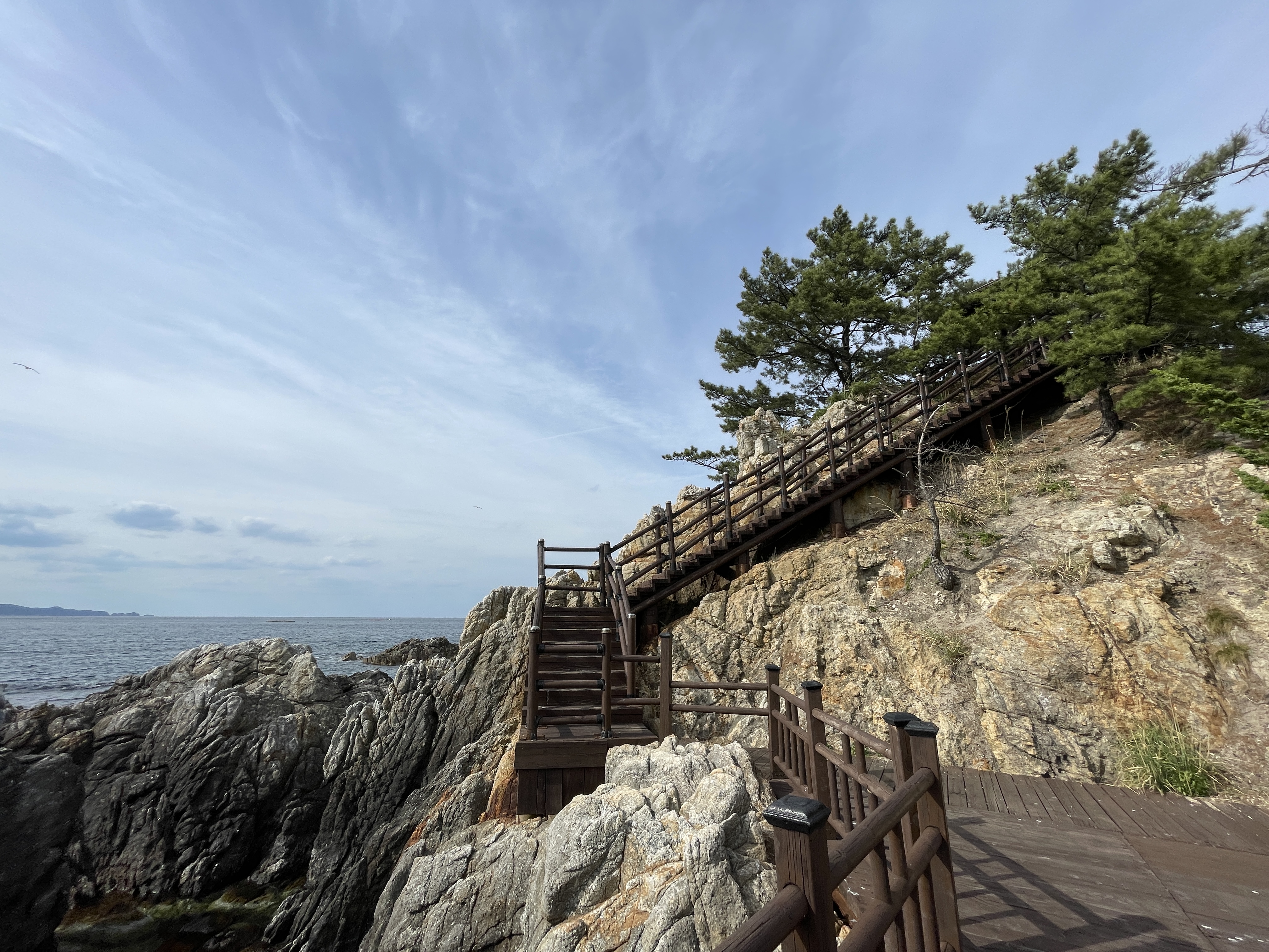 이니셜D 버스를 타고 장호항 정거장에 도착했다. 정거장이 장호항 마을 입구라 주차장까지 약간의 거리가 있었다. 일정보다 늦어지겠지만 오늘 못 걸은 것을 조금이라도 만회할까 하여 장호해변을 지나 장호역 옆에 있는 둔대암까지 걸어가 구경했다. 장호항이 스노쿨링으로 유명하다고 하더니, 명성대로 물이 엄청 맑았다. 다리 위에서 맑은 바닷물을 보니 몇년 전 TV에서 이 곳이 나왔던 게 기억이 난다.